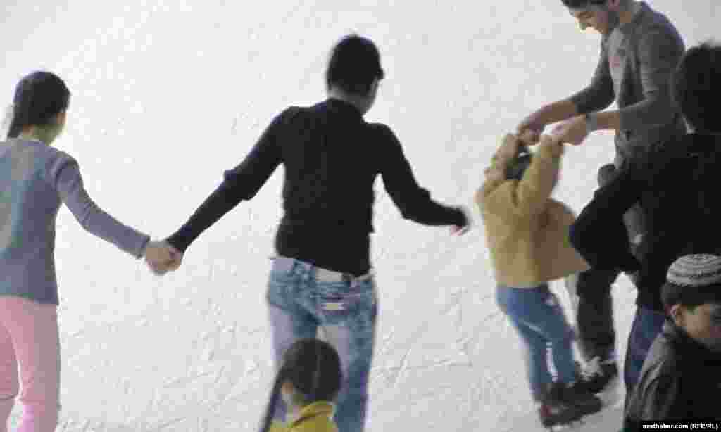 Aşgabatda ýerleşýän Buzly köşgüniň buzly arenasynyň uzynlygy 60 metr, ini bolsa 30 metr. Bu buzly meýdançada bir wagtda 150 adama buzda typmaga mümkinçilik bar. Buzda typmak üçin barýanlaryň sany ýyl geçdigiçe artýar.