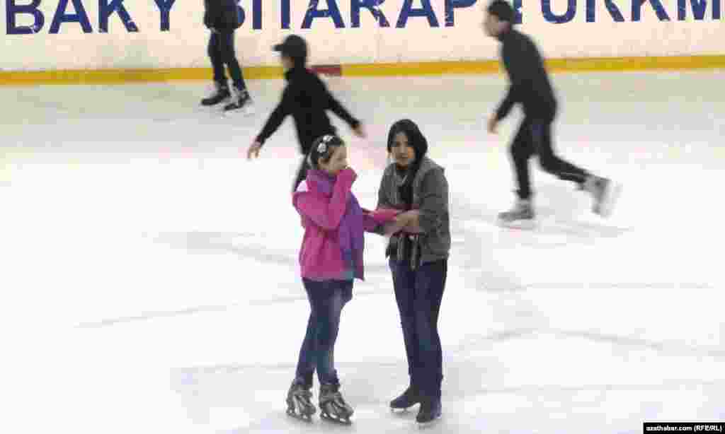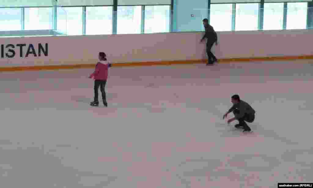 Aşgabatda ýerleşýän Buzly köşgüniň buzly arenasynyň uzynlygy 60 metr, ini bolsa 30 metr. Bu buzly meýdançada bir wagtda 150 adama buzda typmaga mümkinçilik bar. Buzda typmak üçin barýanlaryň sany ýyl geçdigiçe artýar.