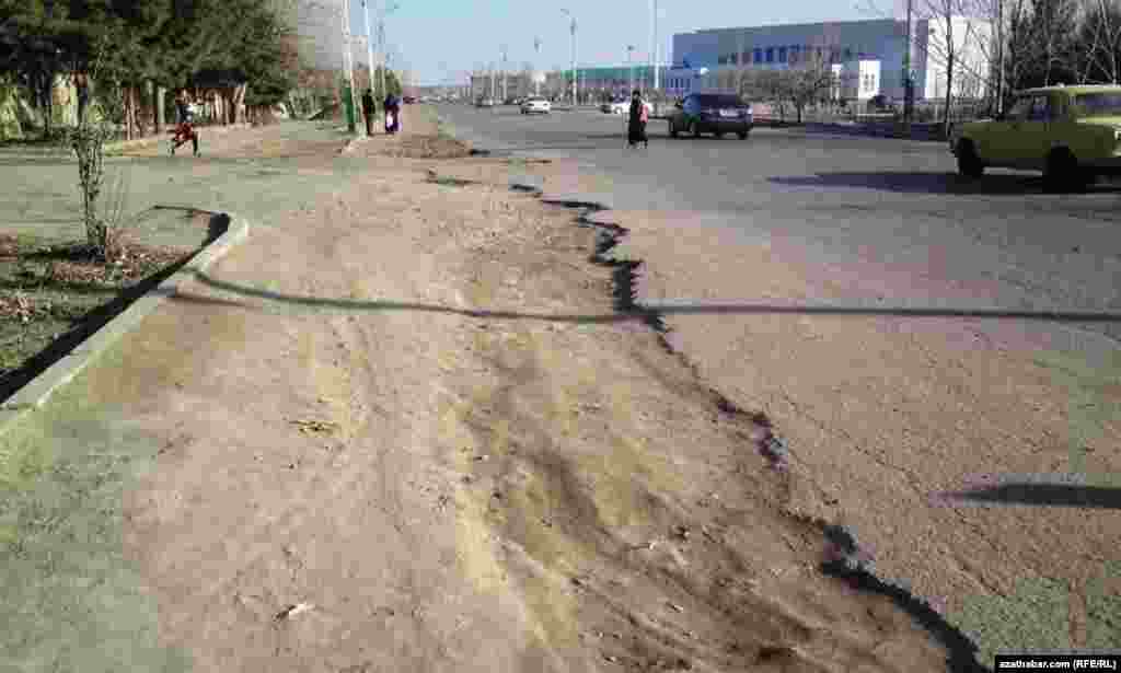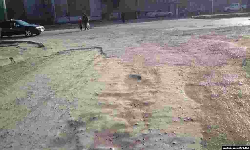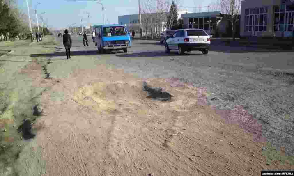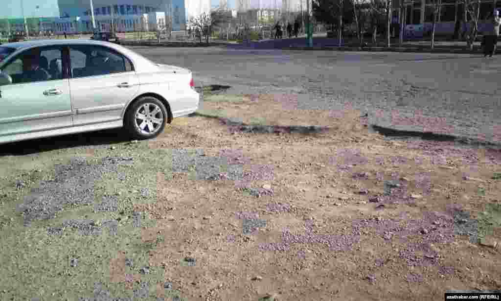 Türkmenabat şäheriniň köçeleriniň belli bir böleginiň juda ýaramaz ýagdaýdadygy, munuň hem ýerli sürüjilere käbir kynçylyklary döredýändigi habar berilýär.