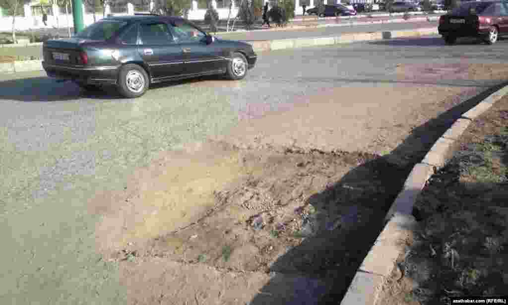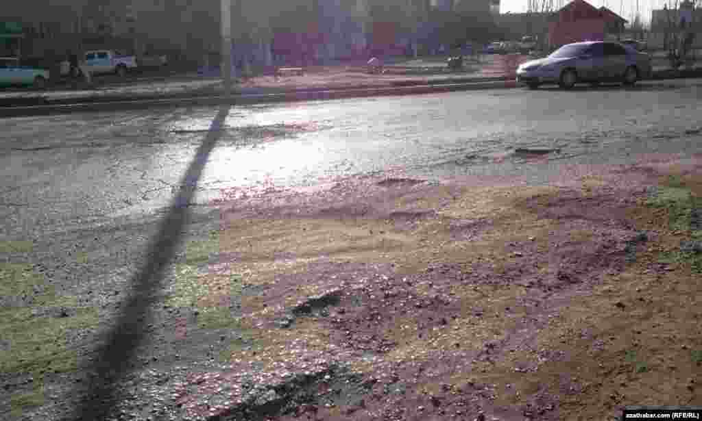 Türkmenabat şäheriniň köçeleriniň belli bir böleginiň juda ýaramaz ýagdaýdadygy, munuň hem ýerli sürüjilere käbir kynçylyklary döredýändigi habar berilýär.