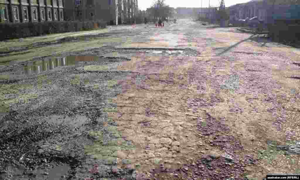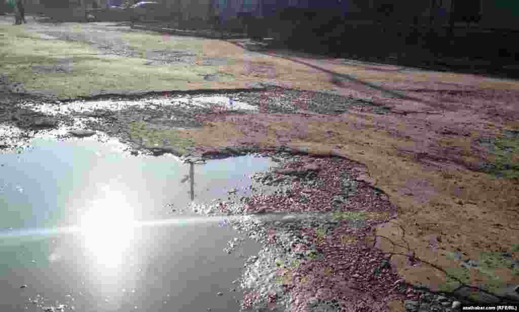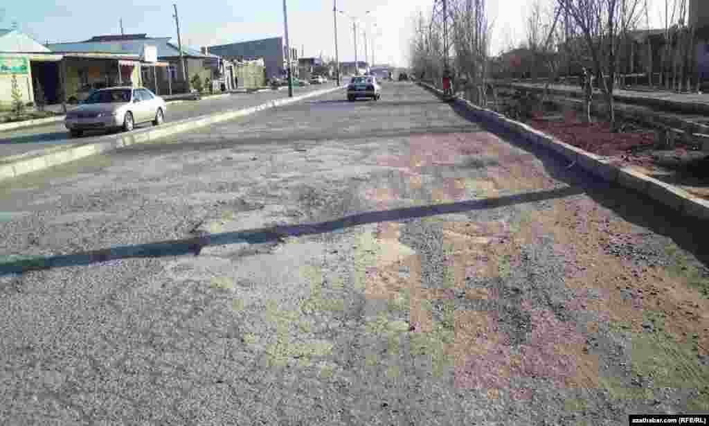 Türkmenabat şäheriniň köçeleriniň belli bir böleginiň juda ýaramaz ýagdaýdadygy, munuň hem ýerli sürüjilere käbir kynçylyklary döredýändigi habar berilýär.