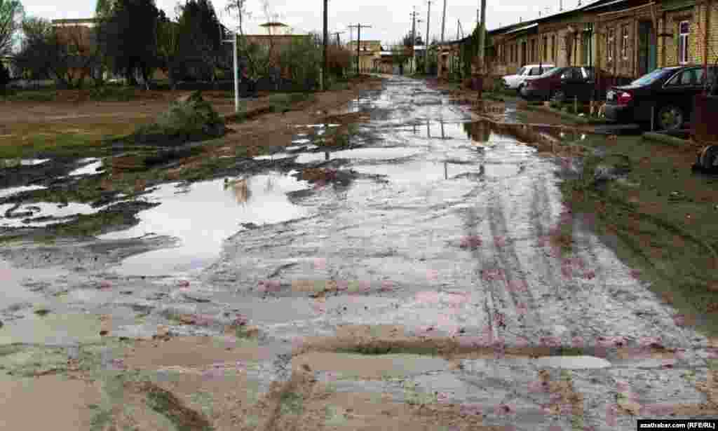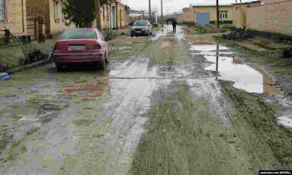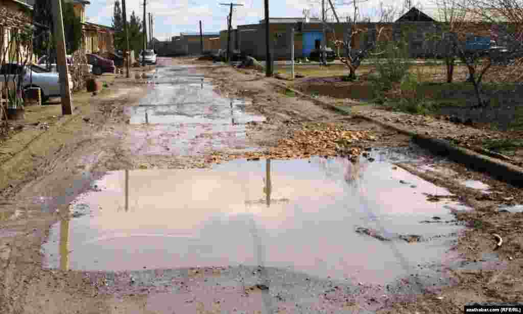 20-nji martda Lebaba ýagan ýagyşdan soňra, welaýatyň köp etrapdyr obalarynyň köçelerinde batgalyklar döredi. Suratlarda Garaşsyzlyk etrabynyň Niýazow şäherçesiniň köçeleri.