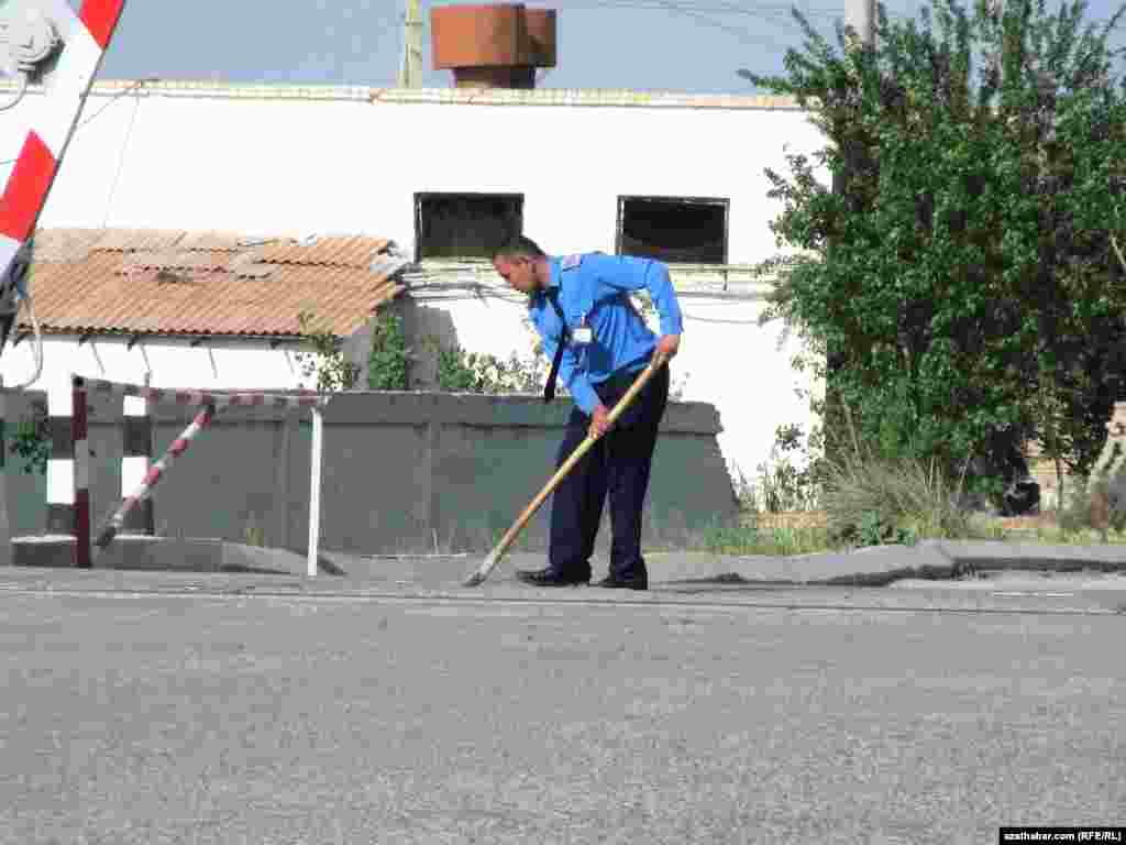 Maryda köçe süpürýänçi bir aýal dynjyny alýar