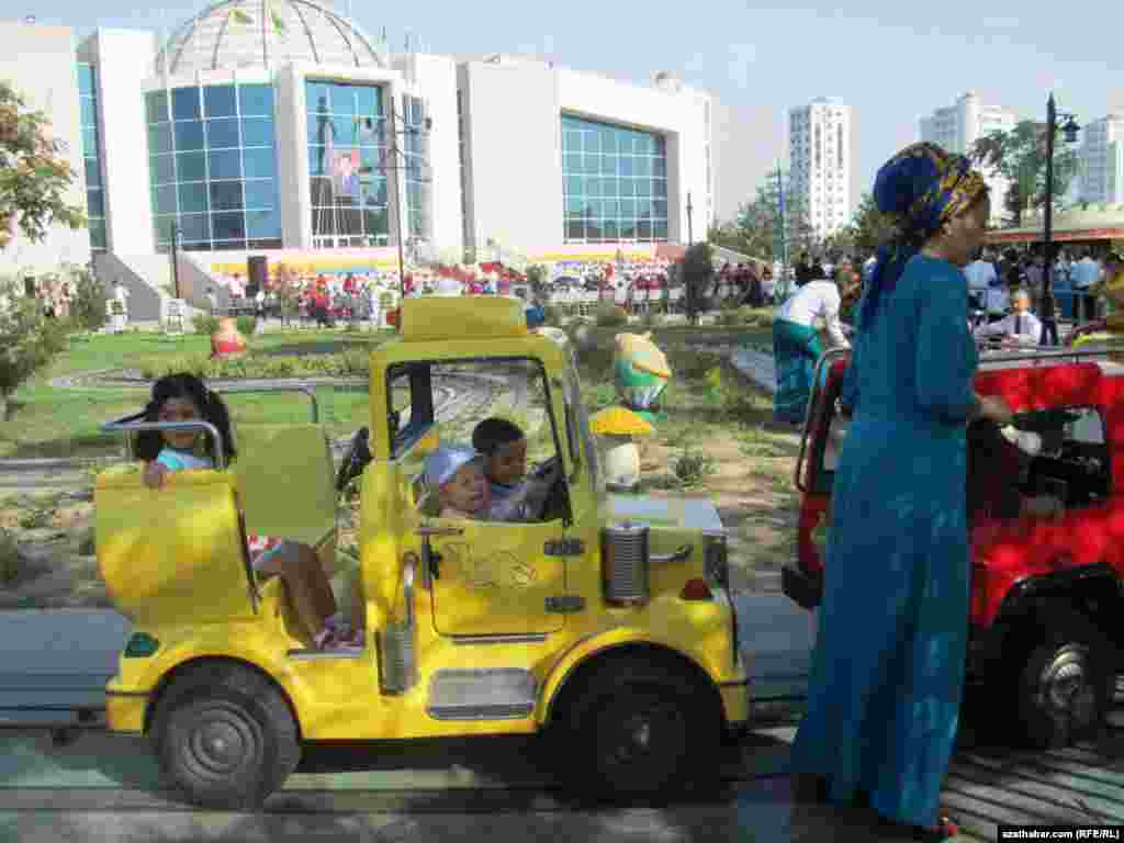 Aşgabatdaky "Ertekiler dünýäsi" seýilgähinden suratlar. Dynç günleri, il içinde "disneýlend" hem diýlip atlandyrylýan bu seýilgähe gelýän adamlaryň sany has-da köp bolýar.