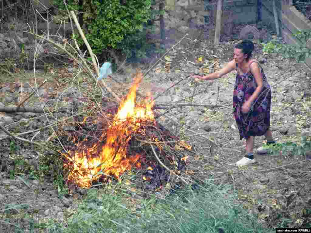 Gartaşan bir aýal ot çöpleýär