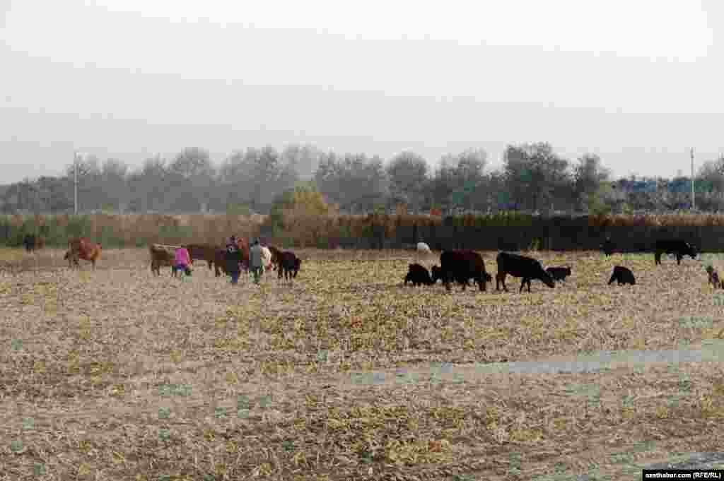 Güýz aýlary Lebabyň ekin meýdanlary eňňere bolýar. Şol pursatdan peýdalanyp obaly mal bakýan çagalar, ýigit-gyzlar öz hojalygyndaky iri şahly we maýda mallaryny şol meýdanlara bakmaga alyp çykýarlar. Käbir lebaplylaryň aýtmagyna görä soňky döwür eňňere bolýan ekin meýdanlar öňkä garanyňda has seýrekläpdir. Sergide Lebabyň Jeýhun obasynyň mekgejöwenden boşan meýdanyndan käbir pursatlar hödürlenýär.