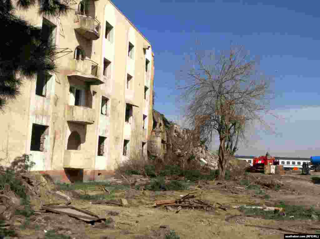 Jaýlary ýykmak işini amala aşyrýan işgärler.
