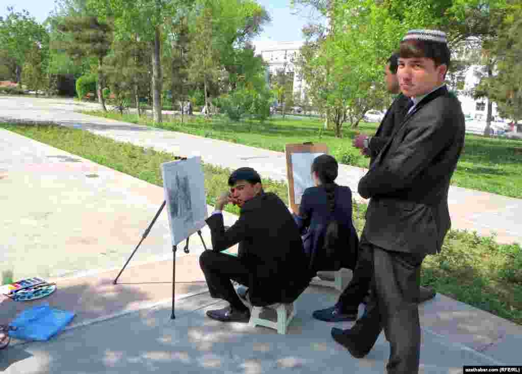 Aşgabadyň ýörite Çeperçilik mekdebiniň okuwçylary özleriniň okuw sagatlarynyň köp bölegini tejribe bilen utgaşdyrýarlar. Olary şäheriň dürli seýilgählerinde we beýleki gözel ýerlerinde, häli-şindi görse bolýar. Şekillerde Aşgabadyň “Ylham” seýilgähiniň günorta böleginde paýtagtyň Çeperçilik mekdebiniň okuwçylarynyň dürli şekilleri surata geçirýän pursatlary görünýär.