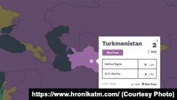 Syýasy hukuklar boýunça mümkin bolan 40 bahadan 0 baha, raýat azatlyklary boýunça mümkin bolan 60 bahadan 2 baha alan Türkmenistan ýene-de “azat däl” ýurtlaryň” sanawynda galdyryldy.